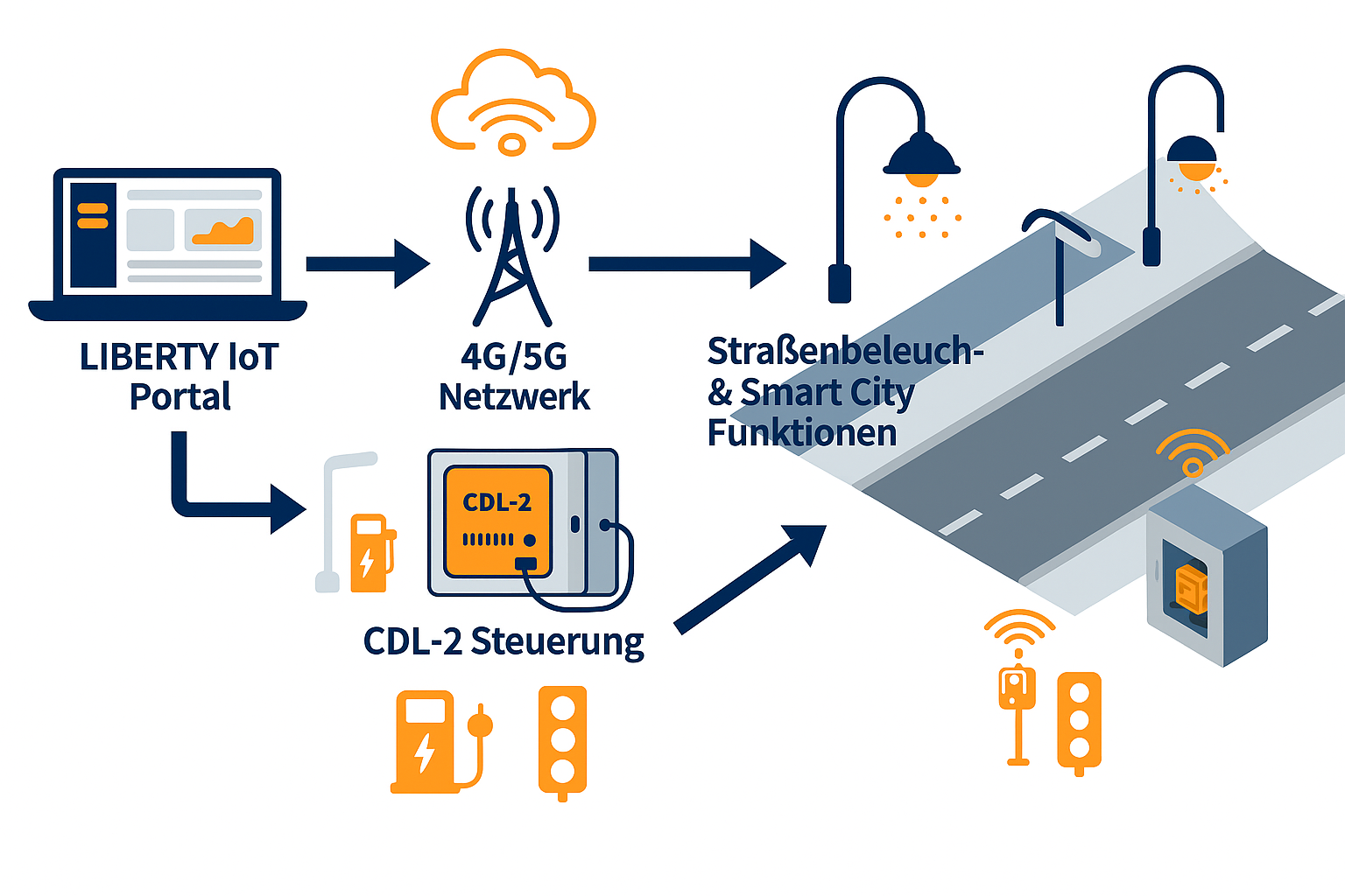 Mit Liberty können Stadtbeleuchtungsanlagen zentral und intelligent gesteuert werden.